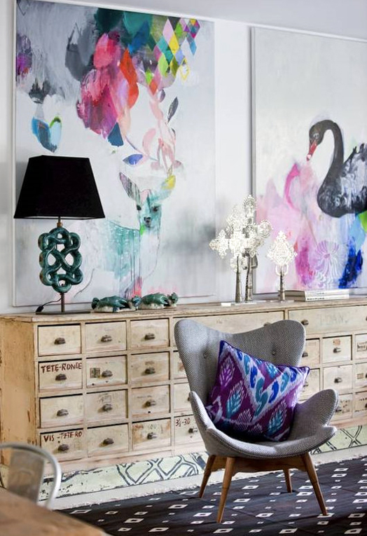 Oh My Gosh! I adore this home, it makes me want to re-decorate my whole house. I love that bed and some of the paintings are fabulous.