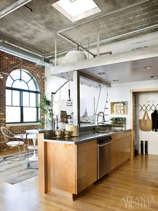 This beautiful loft in Buckhead, Atlanta belongs to Elizabeth Hanson. It was one of those 'right time, right place' situations - Elizabeth stumbled across the construction site, and asked to look at the top floor unit. She loved it so much she decided to buy it completely empty - no flooring, no plumbing, no ductwork, nothing! It was a turning point in her life. With a degree in psychology, but working as a florist, she poured her creativity into designing and creating her new home - the most hectic four months of her life! With a lifetime love of interior design, it inspired her to go back to school, and while studying at the Art Institute of Atlanta was hired as an intern at Westbrook Interiors, where she now works fulltime.