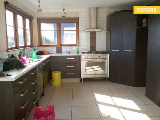 A Bibby + Brady client of ours hired Dael and I recently to help her with a mini kitchen renovation. She didn't want an entirely new kitchen, she was happy with the layout, but just wanted to freshen it up. The cupboards and cabinetry were a dark brown and the walls were painted a creamy colour. The floor tiles were to remain for now, but the space definitely needed to be lightened and brightened.