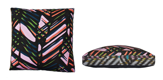 Neon Vintage's 'Love Zambezi' collection consists of a range of large striking cushions. Measuring 45cm square and 6cm deep, they're printed on a cotton linen blend fabric. Each cushion is slightly unique due to the fact that the pattern on the side panel differs slightly on each one. The backs are charcoal cotton with an invisible zip.