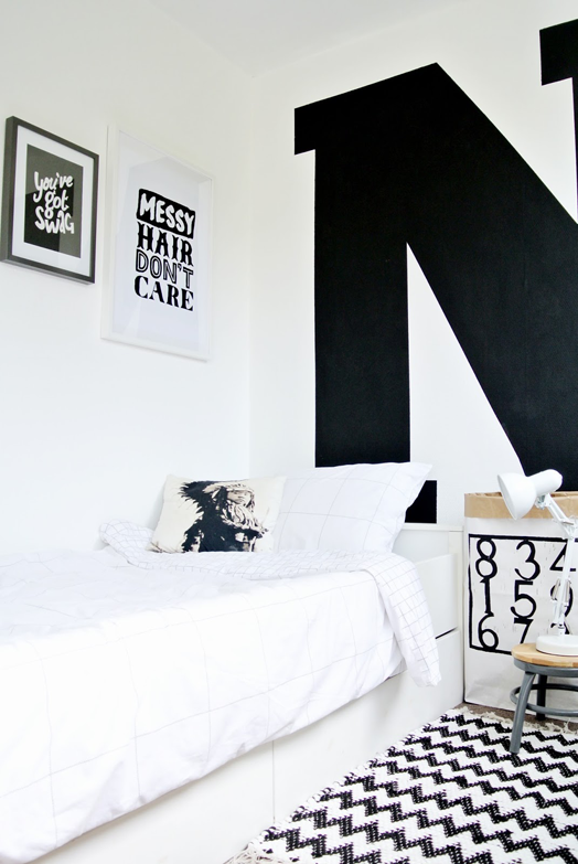 I'm drawn to strong, graphic elements, and this large painted "N" is a fantastic alternative to a smaller wooden or metal letter representing your child's name. If you have a statement piece of furniture, artwork or element in your room, give it maximum impact by keeping the surrounding elements simple and pared-back. Your eye will be drawn to the "hero" piece and will not be fighting with things around it.