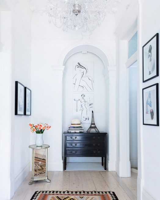 I've just been flicking through the latest Rue Magazine, and came across this home, which I love. It belongs to mother-of-two, and owner of fashion label 'We Are Kindred', Lizzie Renkert. You can tell from the entrance that it's going to be a fabulous home, and what I love about it is it's sense of history. Lizzie has mixed new pieces with items that once belonged to her parents and grandparents, and much-loved furniture bought on her travels (my favourite is the antique dresser in the bathroom).